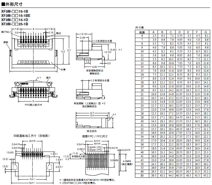適用FPC /FFC 厚度, t = 0.3 mm。